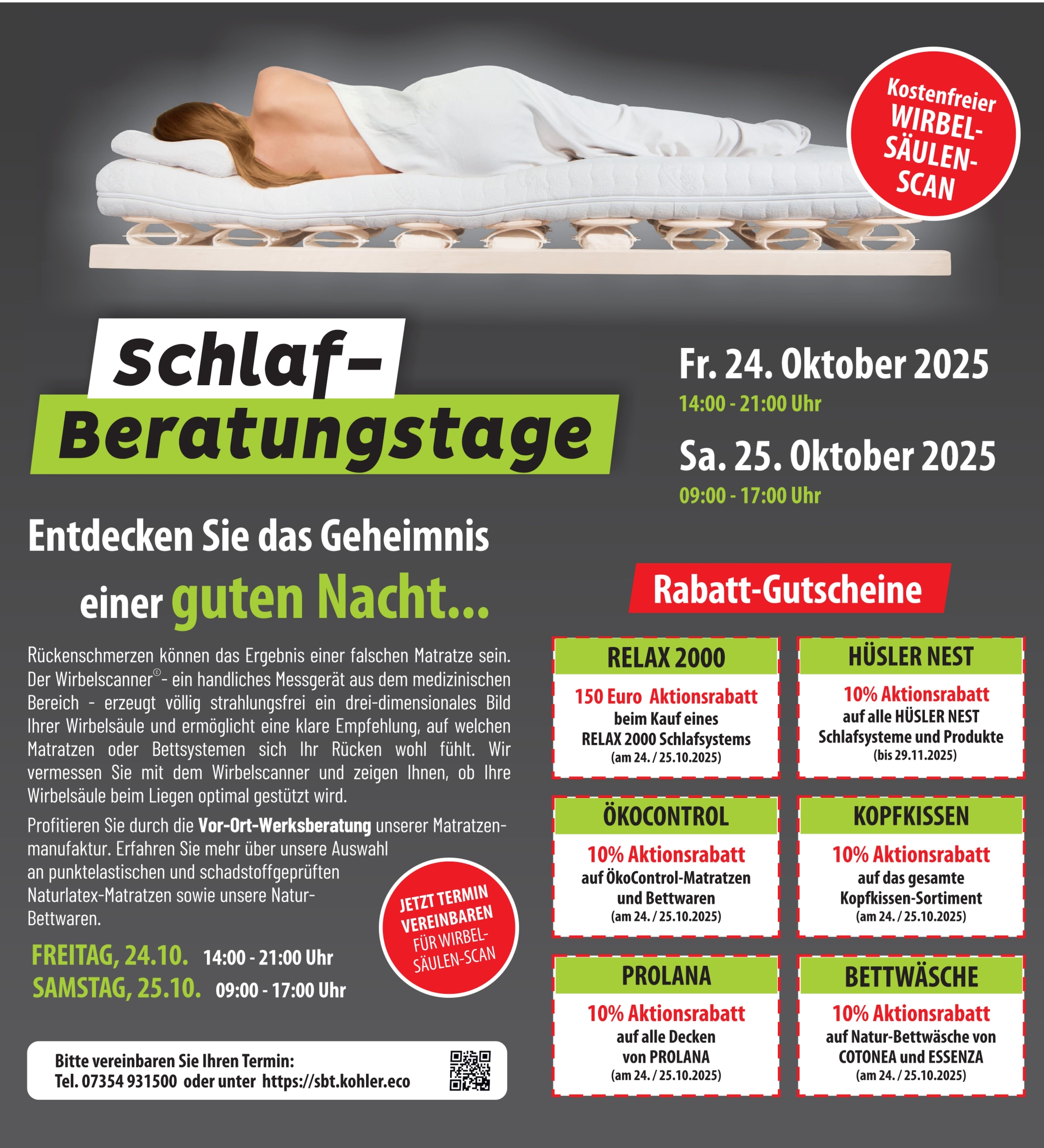 Schlaf-Beratungstage am Fr. 24. und Sa. 25. Oktober 2025